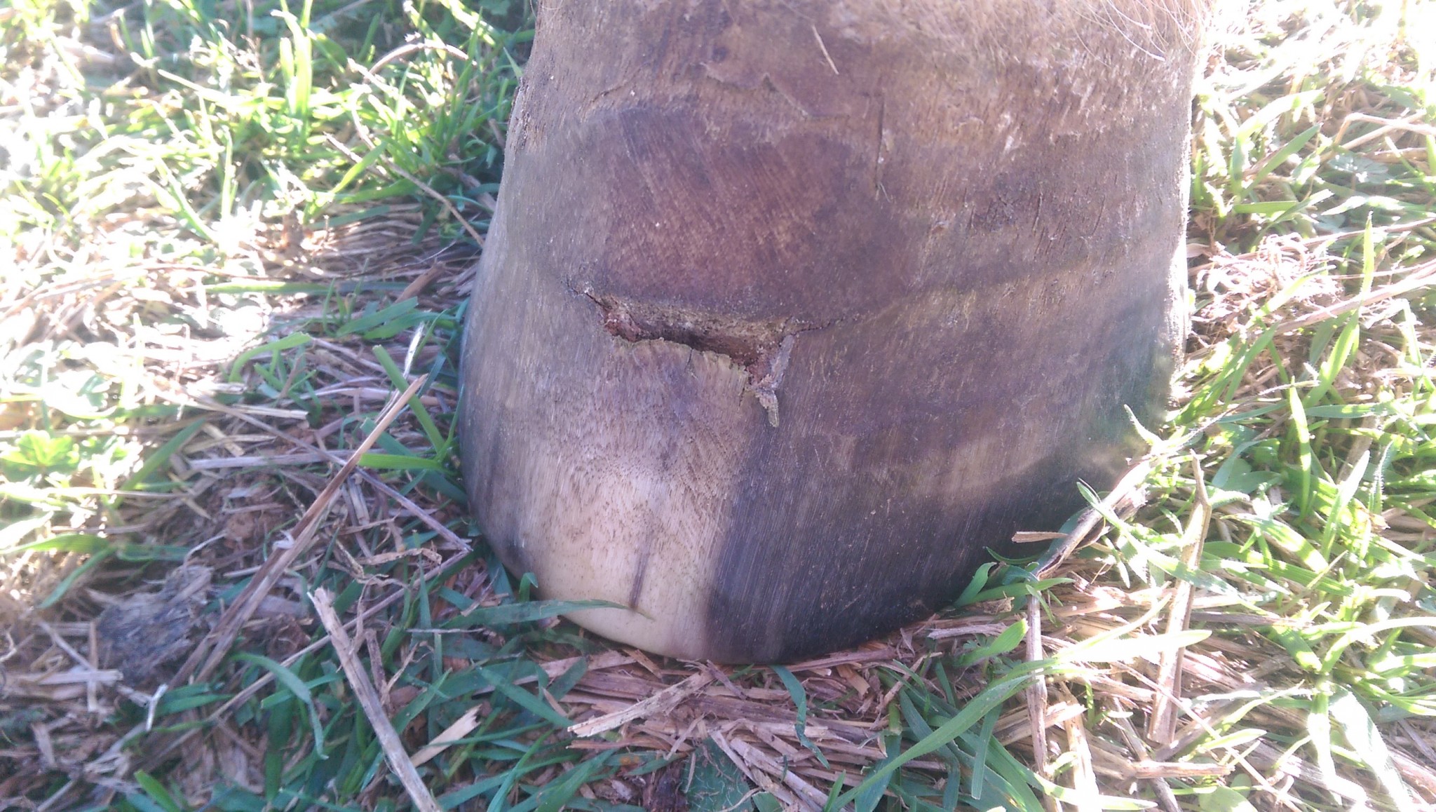 On voit sur la photo de l’abcès creusé de décembre 2015 les problèmes de pousse de la corne suite à l’abcès d’Août de la même année.